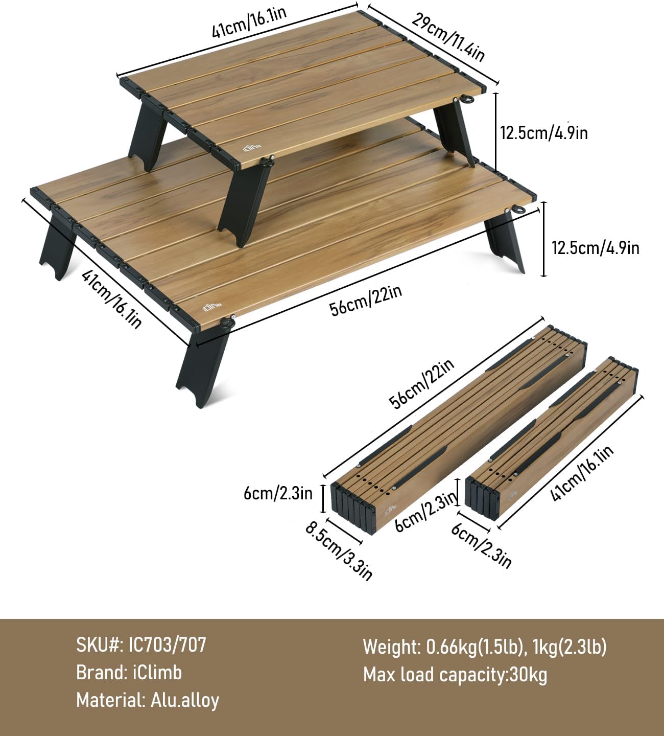 - Ultralight, made of high quality aluminum alloy 6063, only 2.4 lbs; Max Load 66 lbs; Unlike wooden or nylon-top tables, this table is durable, waterproof, corrosion-resistant, easy to clean; Heat resistant, can put your stove on