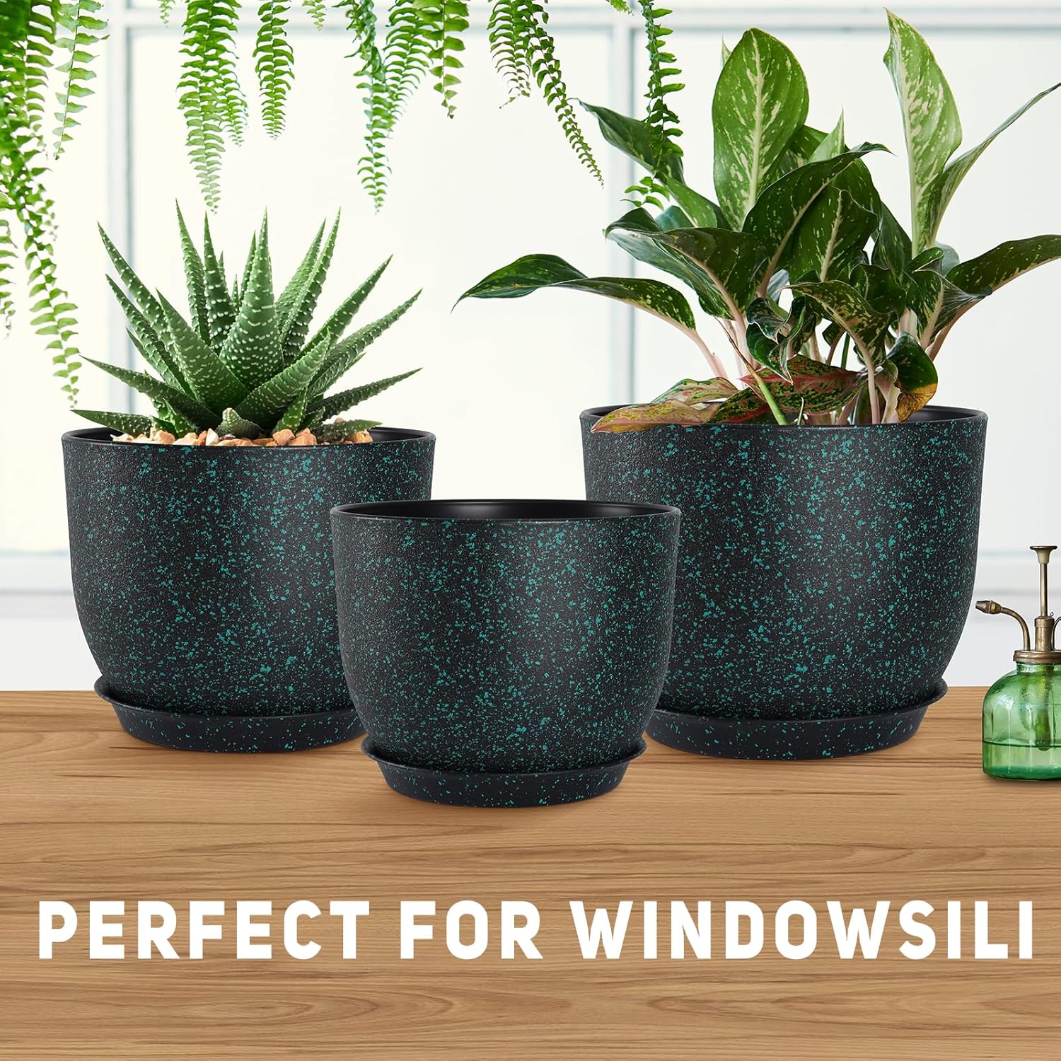 Plant Pots 10/9/8/7.5/7 inch Set of 5,Flower Pots with Multi Mesh Drainage Holes, Large Planters for Indoor Outdoor Garden Plants and Flowers. (Green Speckles)