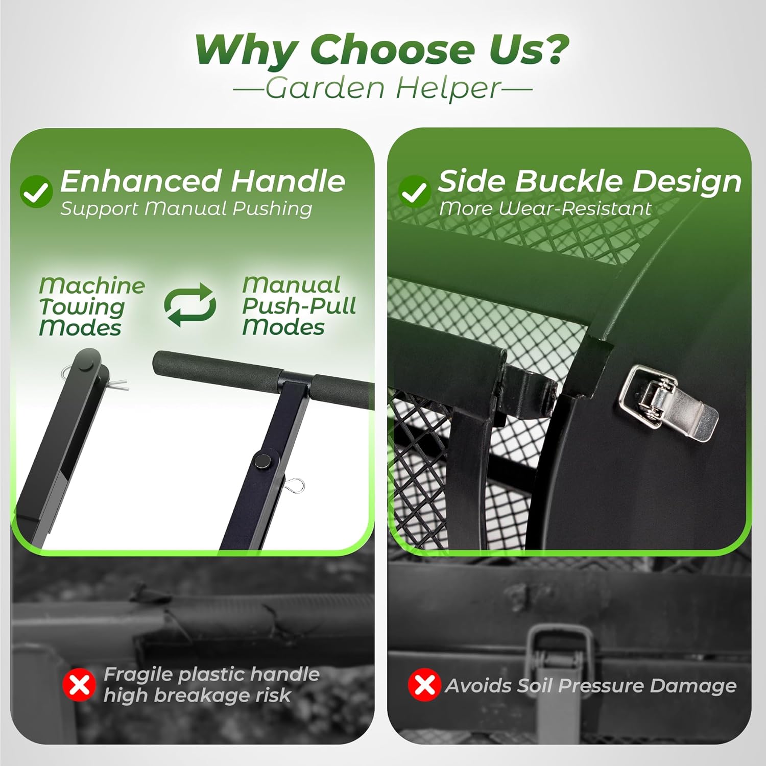 - MANUAL PUSH & TOW-BEHIND DUAL MODES: Equipped with an ergonomic T-handle for manual push/pull operation and compatible with garden machinery for tow-behind use. With the upgrade T-handle to avoid broken and makes it more durable and sturdy. Ergonomic rubber handle grips for non-slip and comfortable. Flexible functionality meets various lawn sizes and user needs—perfect for homeowners and professional landscapers alike.